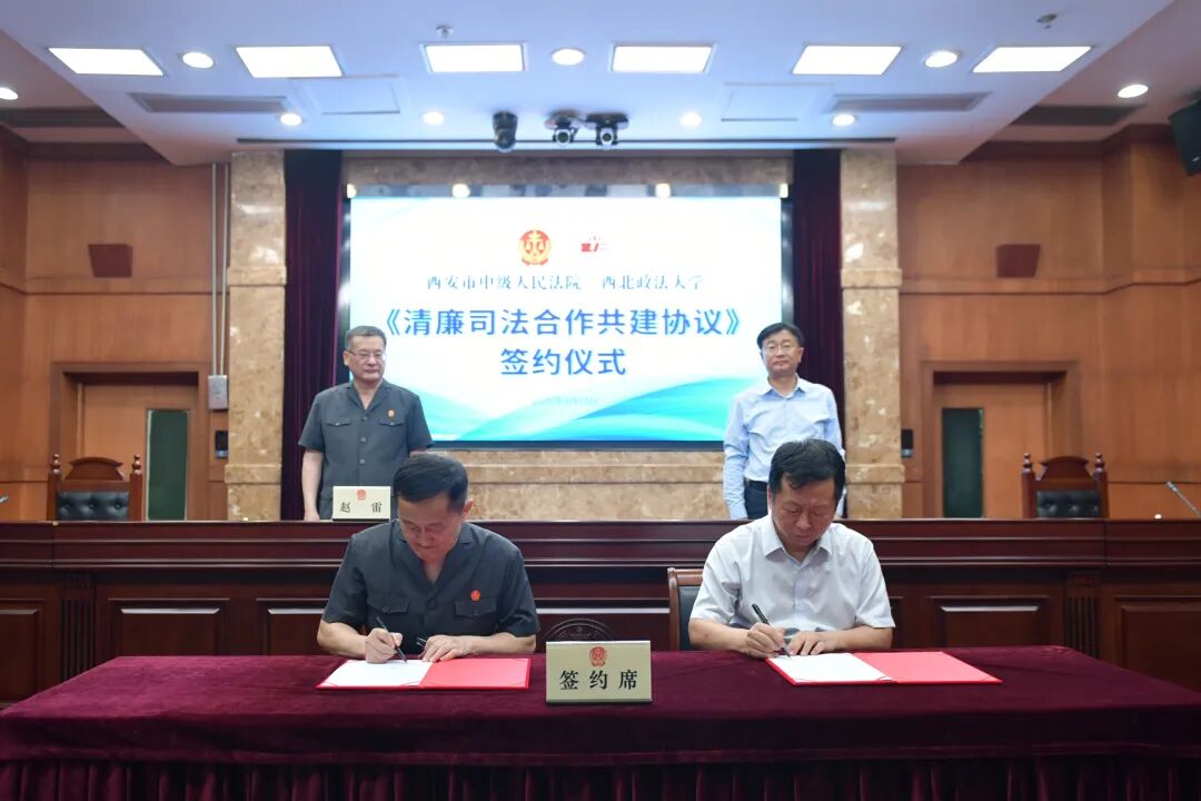 9月10日,我校与西安市中级人民法院举行清廉司法合作共建签约暨“西安法院廉政文化教育与研究平台”揭牌仪式。我校党委副书记、校长范九利,西安中院党组书记、院长赵雷共同为“西安法院廉政文化教育与研究平台”揭牌。行政法学院(纪检监察学院)院长姬亚平与西安中院党组成员、副院长段红军签署合作共建协议。