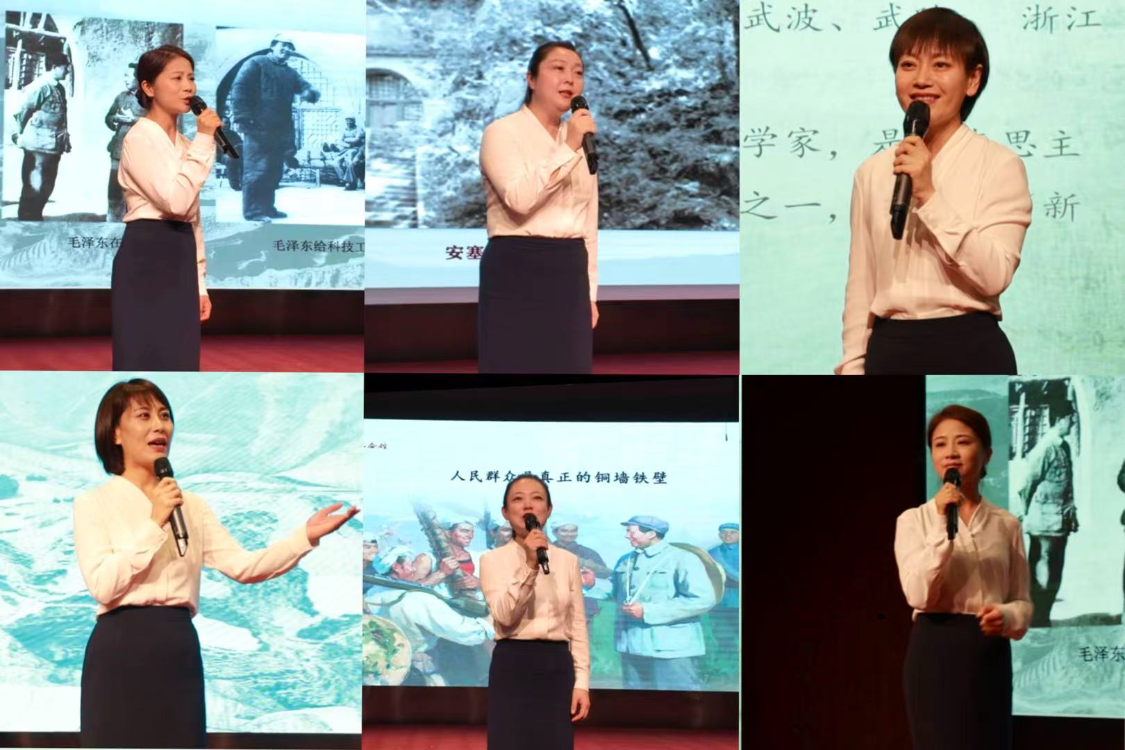宣讲活动中,讲解员白婷、张持、张艳、张静、王园园,分别以《“诗言志”—小炕桌上书写的千古绝唱》《凝聚在照片里的时代精神》《镌刻在石头上的四字箴言》《为人民服务》《站在最大多数劳动人民的一面》为题,用质朴的语言、珍贵的历史影像、感人的事例和真挚的情感,将波澜壮阔的延安岁月和跨越时空的延安精神娓娓道来,引起在场师生强烈共鸣,报告厅内多次响起热烈掌声。