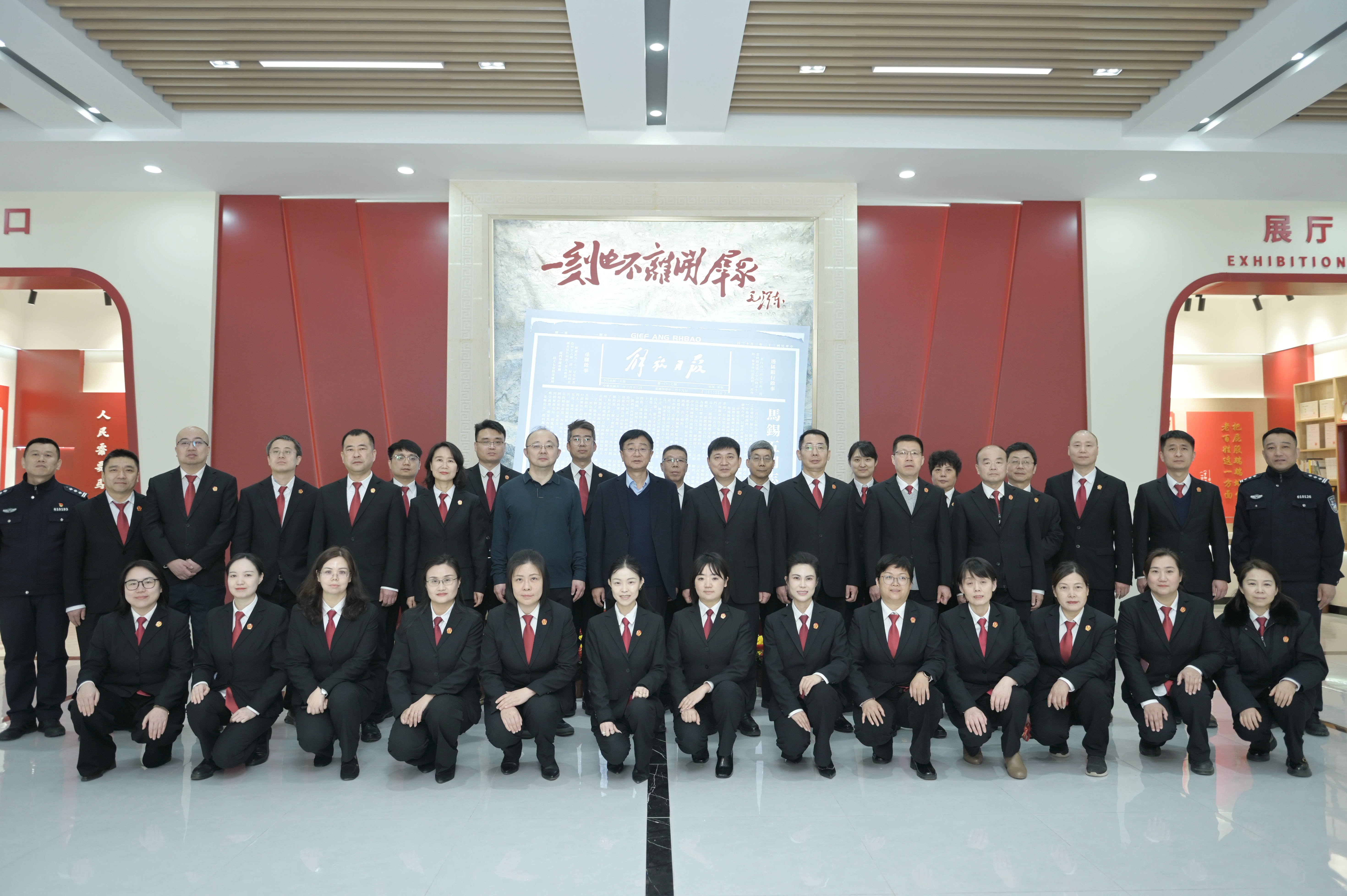 研学活动以“传承红色法治基因 践行司法为民初心”为主题,通过“实地探访+案例重现”,引导干警们在沉浸式体验中感悟初心使命、凝聚奋进力量。在“马锡五调解婚姻纠纷”主题雕塑前,大家近距离感受马锡五在司法过程中贴近群众、脚沾泥土、深入生活的司法精神。步行穿过中华法治文明文化墙,一幅幅手绘图文精准还原了“周公制礼”“甘棠听讼”“徙木立信”“纵囚归狱”等12个具有里程碑意义的中国法治经典事件,大家在“步移景易、法润人心”的场景中感受中华法治文化的演进脉络与精神内核。在马锡五审判方式与人民司法优良传统教育展厅,干警们穿过篆刻宪法的五根立柱,近距离参观马锡五与“马锡五审判方式”、陕甘宁边区时期的法治建设以及“把屁股端端地坐在老百姓的这一面”等核心展陈,通过斑驳的实物、珍贵的史料,细致了解马锡五审判方式的历史背景、核心含义,深刻感受“一刻也不离开群众”的精神实质,充分理解这一被誉为“东方审判经验”的核心内涵。