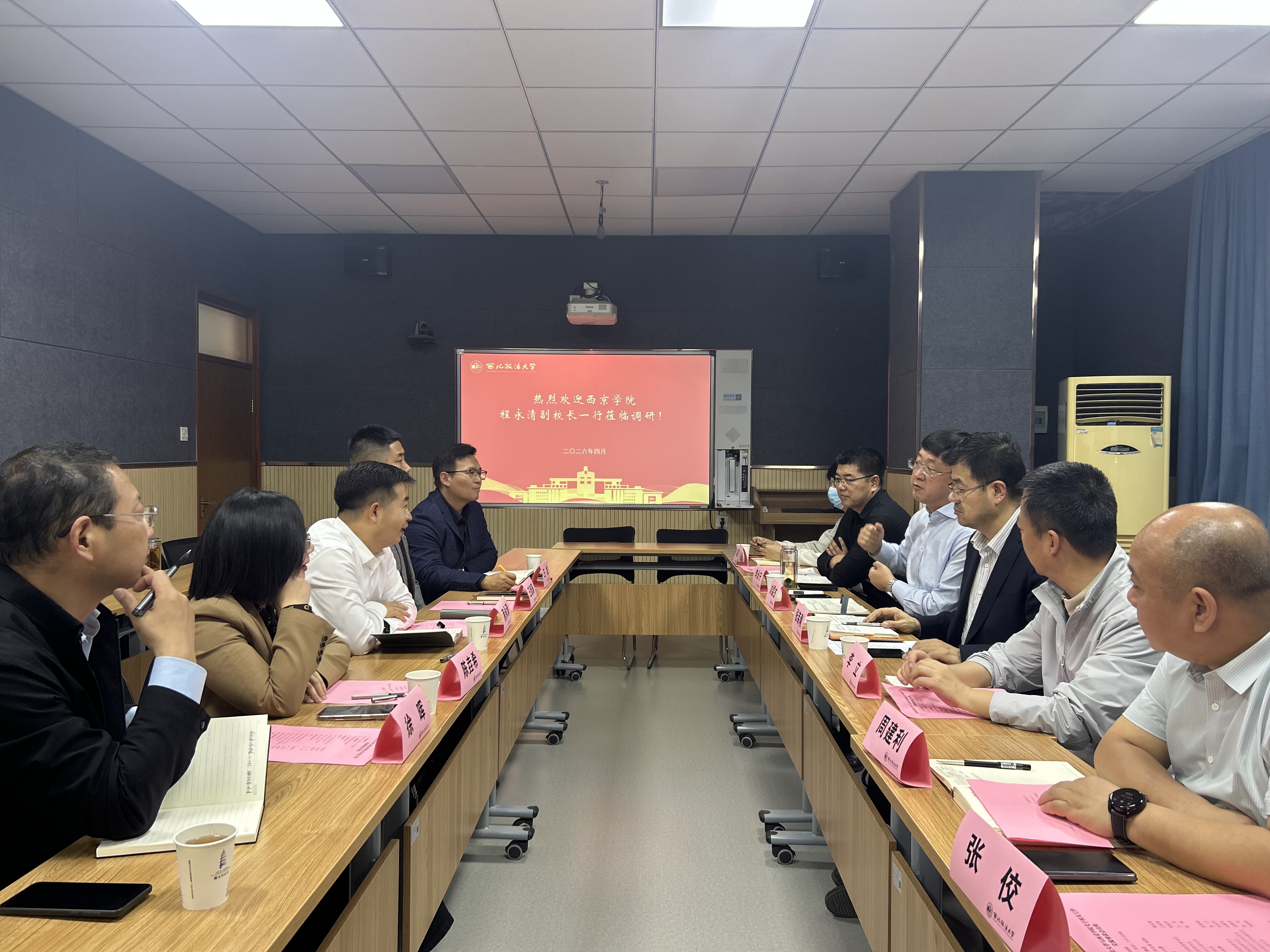 4月9日下午,西京学院副校长程永清一行来校调研,重点围绕校友联络服务、教育发展基金会建设及国内合作拓展等工作开展专题交流。座谈前,校党委书记赵万东亲切会见了程永清一行,对来访表示热烈欢迎,就深化两校合作、实现优势互补交换了意见,对本次座谈交流提出了指导要求。