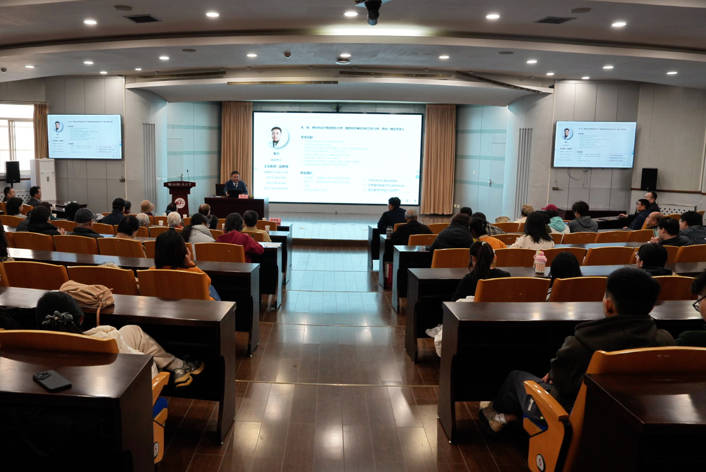 为切实关爱我校教职工身心健康,普及脑血管疾病防治与保健知识,12月18日,我校在长安校区校务楼二楼报告厅举办脑血管健康专题宣讲活动。本场活动特邀国内知名脑血管专家、西安三博脑科医院业务院长李力主任医师担任主讲。校长范九利,校党委副书记、纪委书记、监察专员刘志彬出席,200余名师生代表参加。校党委副书记张军政主持。
