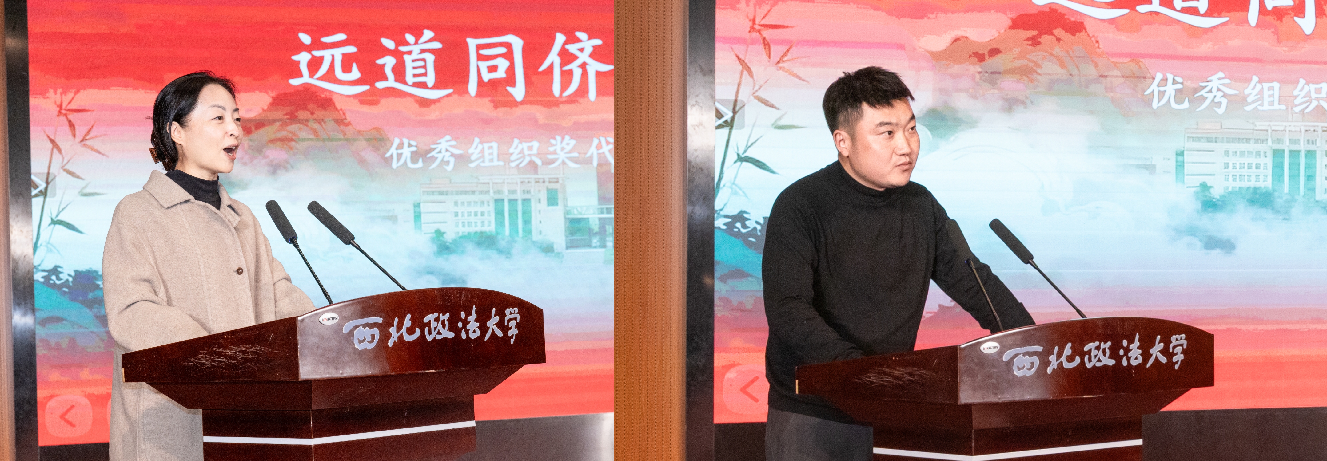 商洛学院党委副书记、纪委书记、监察专员王浩与陕西学前师范学院党委副书记、纪委书记、监察专员赵琼共同为海报组优秀作品颁奖