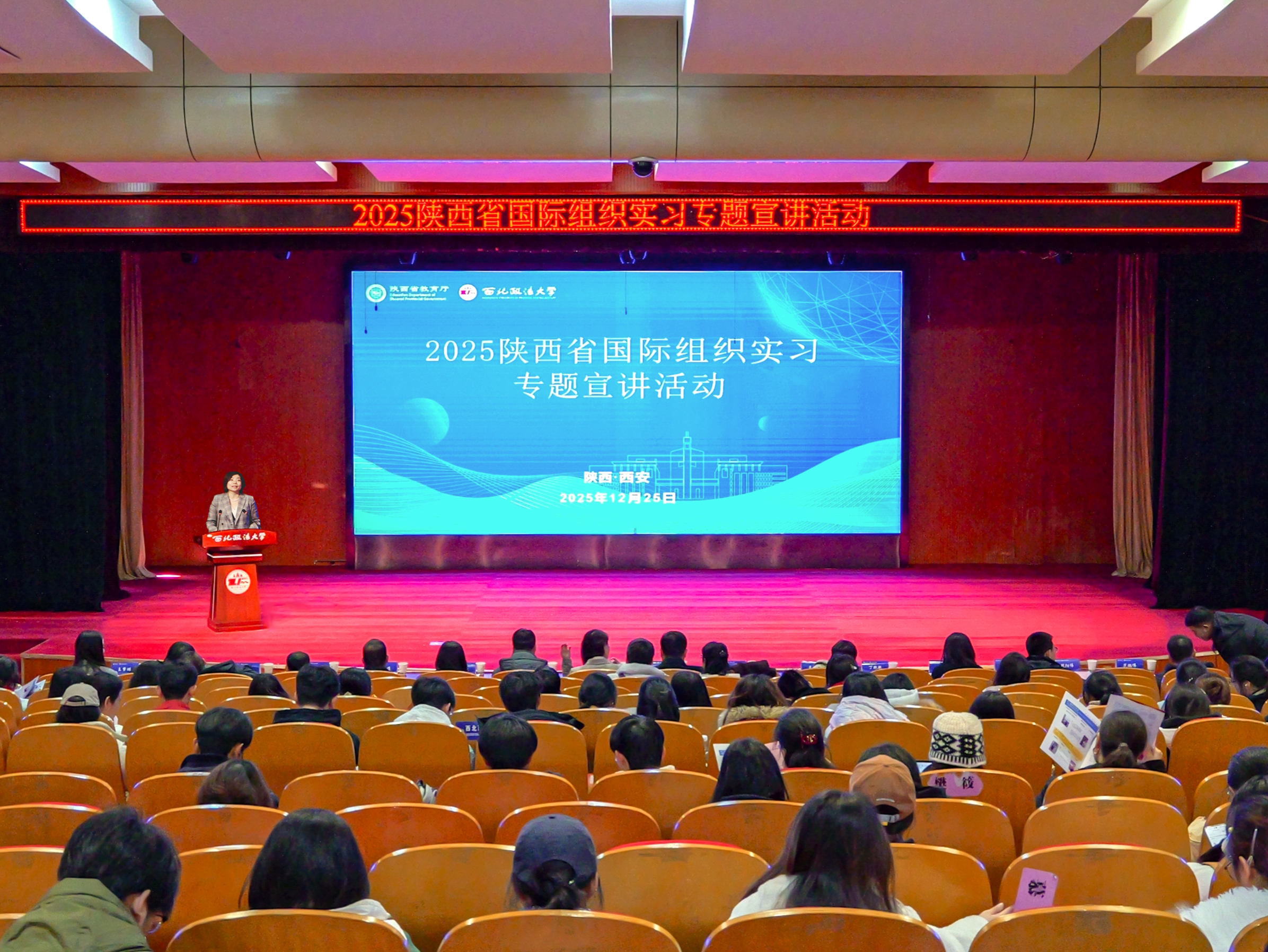 12月25日下午,由陕西省教育厅主办、我校承办的“2025陕西省国际组织实习专题宣讲活动”在长安校区满天星学术报告厅举行。副校长张荣刚,陕西省教育厅外事处有关负责同志、陕西师范大学外国语学院教授孟霞、西安外国语大学国际关系学院外交教研室主任叶振曼出席,我校相关学院负责人以及校内外师生代表近400人参加。国际交流与合作处处长王莹莹主持活动。