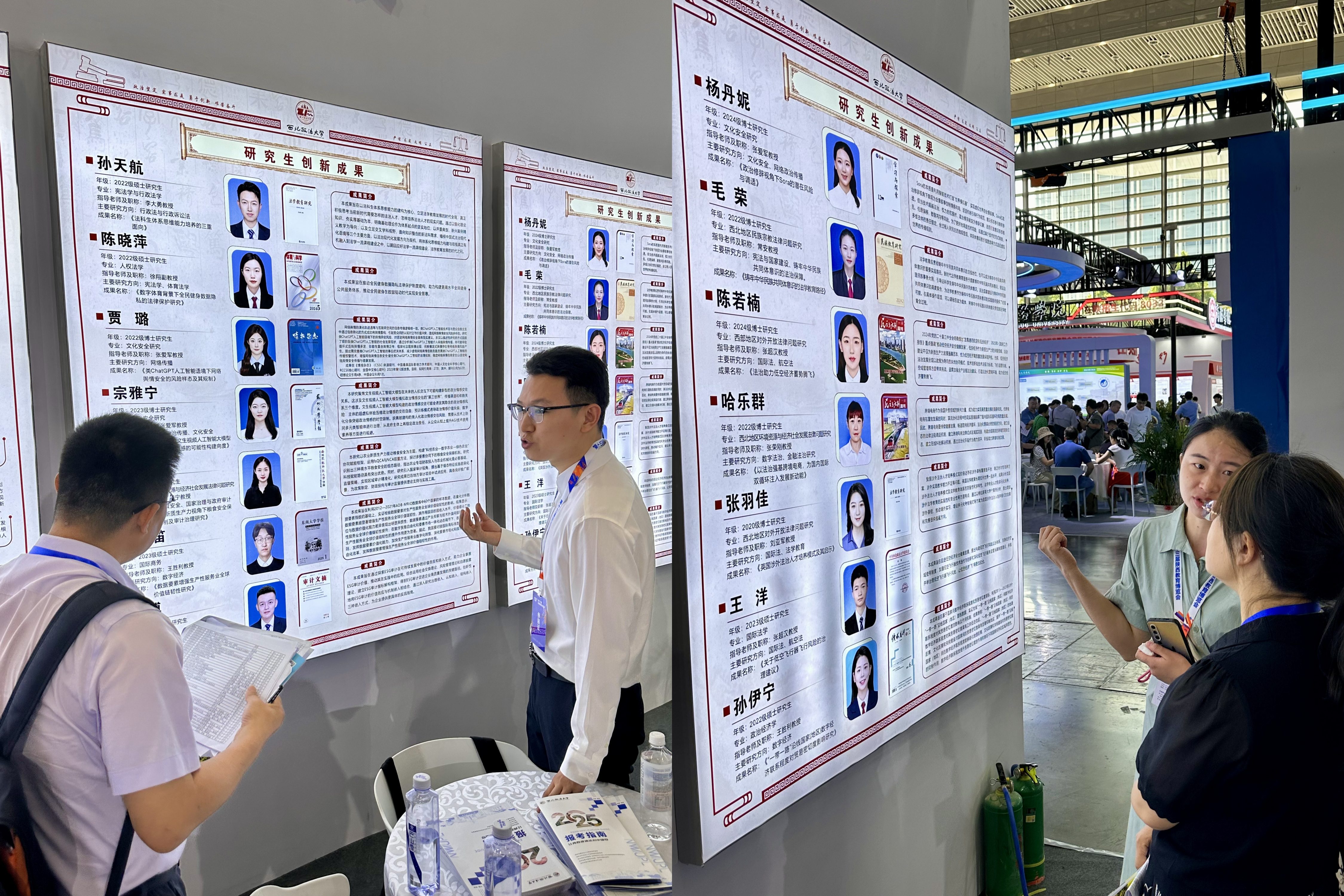 我校博士研究生、硕士研究生在陕西省第九届研究生创新成果展,现场为评委介绍成果