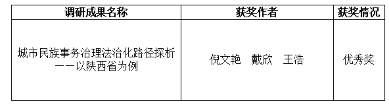 近日,陕西省民族宗教事务委员会公布2025年度全省民族宗教工作优秀调研成果评选获奖名单,我校1篇调研报告荣获优秀奖。